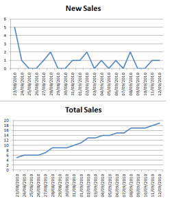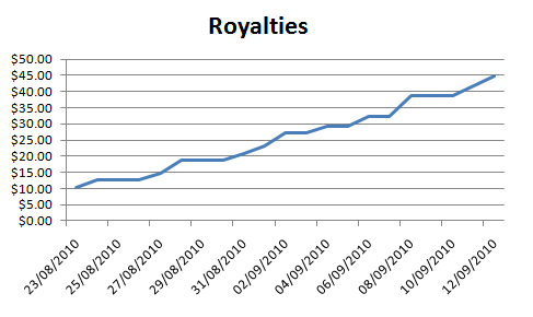First, even with the change in price to $4.49, there hasn’t really been a defined/noticeable change in sales. All told, things look rather constant over these last three weeks, still averaging a little under 1 sale a day: