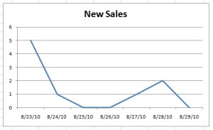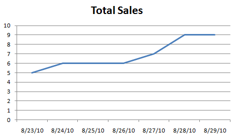OK, so pretty boring, but the first week is done. 9 sales. For those of you interested in how the sales were distributed throughout the week: